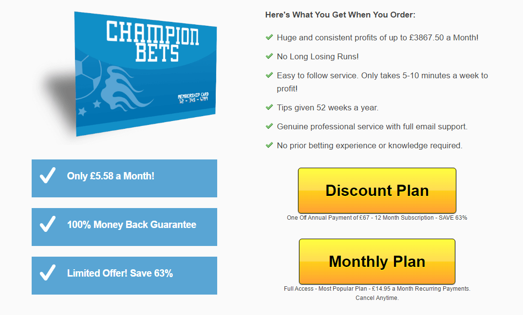 Just think aboutall the wins you’ll start enjoying after you subscribe today. How are you going to treat yourself once you start seeing your profits grow? Go from amateur to Champion by subscribing now.
